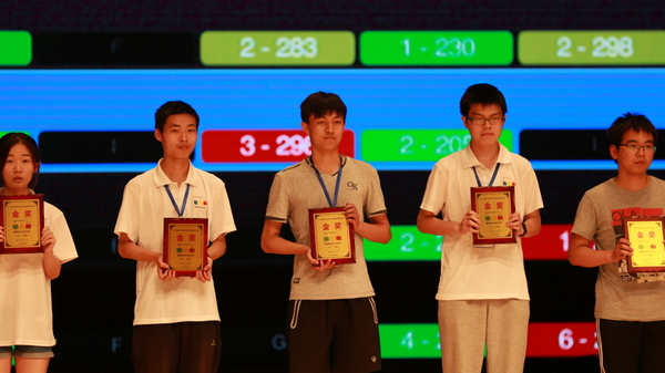 的13级学生殷斌一和袁兆麟担任助理教练。两支参赛队伍分别由物联1401班李志远、安全1402班徐经纬、计算机1502班陈笑天(challenge)和信安1502班简川杰、计算机1504班张清瑜、计算机1604班孙洪武(discovery)组成,其中discovery的三名队员都是第一次参加全国性的ACM-ICPC竞赛。比赛于5月21日上午9:00开始,共11题,限时5小时。challenge队员积极思考、密切配合,成功解出8题,最终获得本次比赛的金奖。challenge和discovery还将参加今年ACM-ICPC亚洲区域赛的各站比赛。