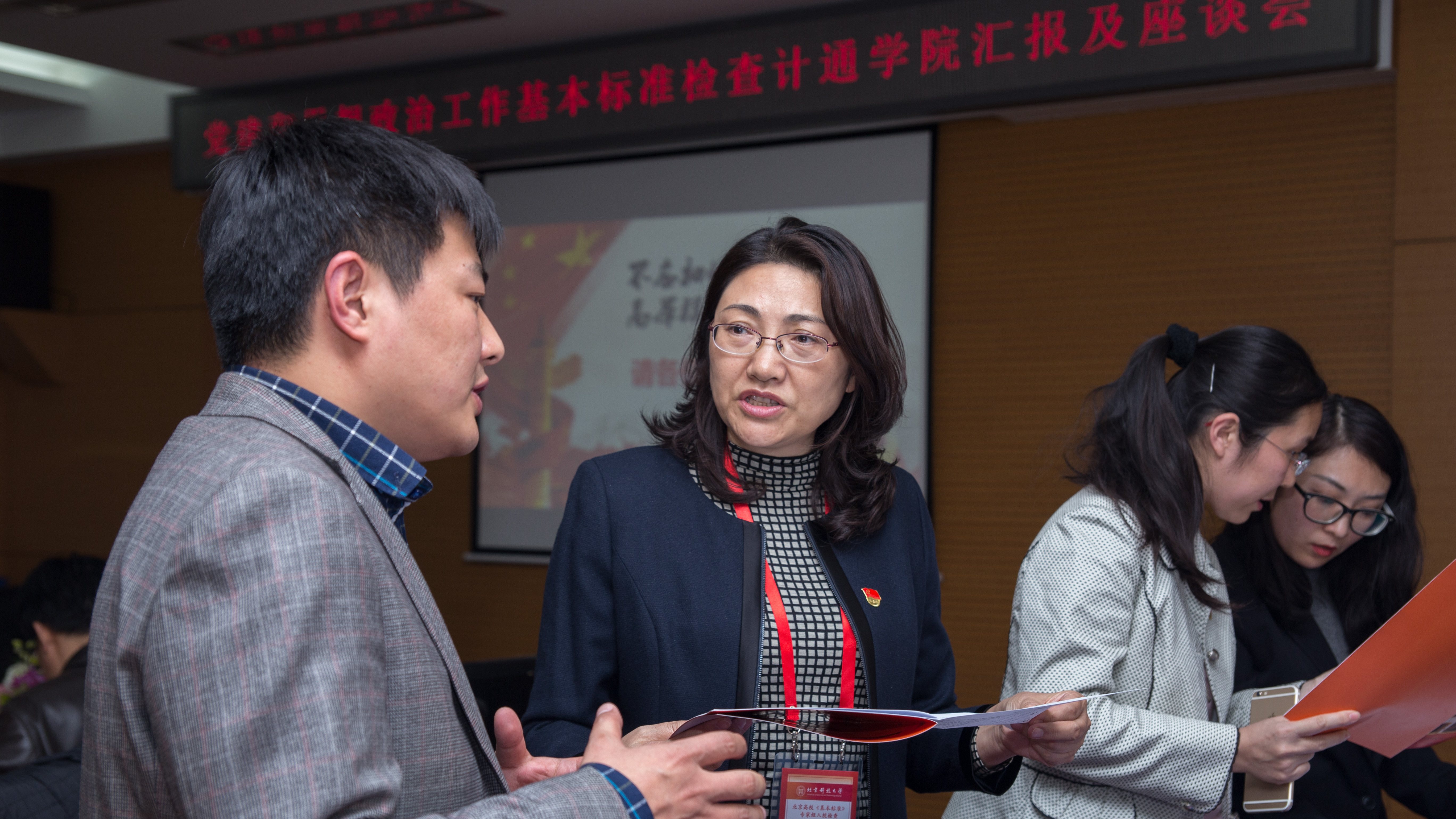 汇报会后,党建工作检查组与成人a片党政领导班子、党支部书记、青年教师及学生代表进行了座谈交流,并对成人a片支撑材料进行了集中审阅。检查组充分肯定了过去5年成人a片党的建设工作成绩,同时提出了下一步改进意见和建议。