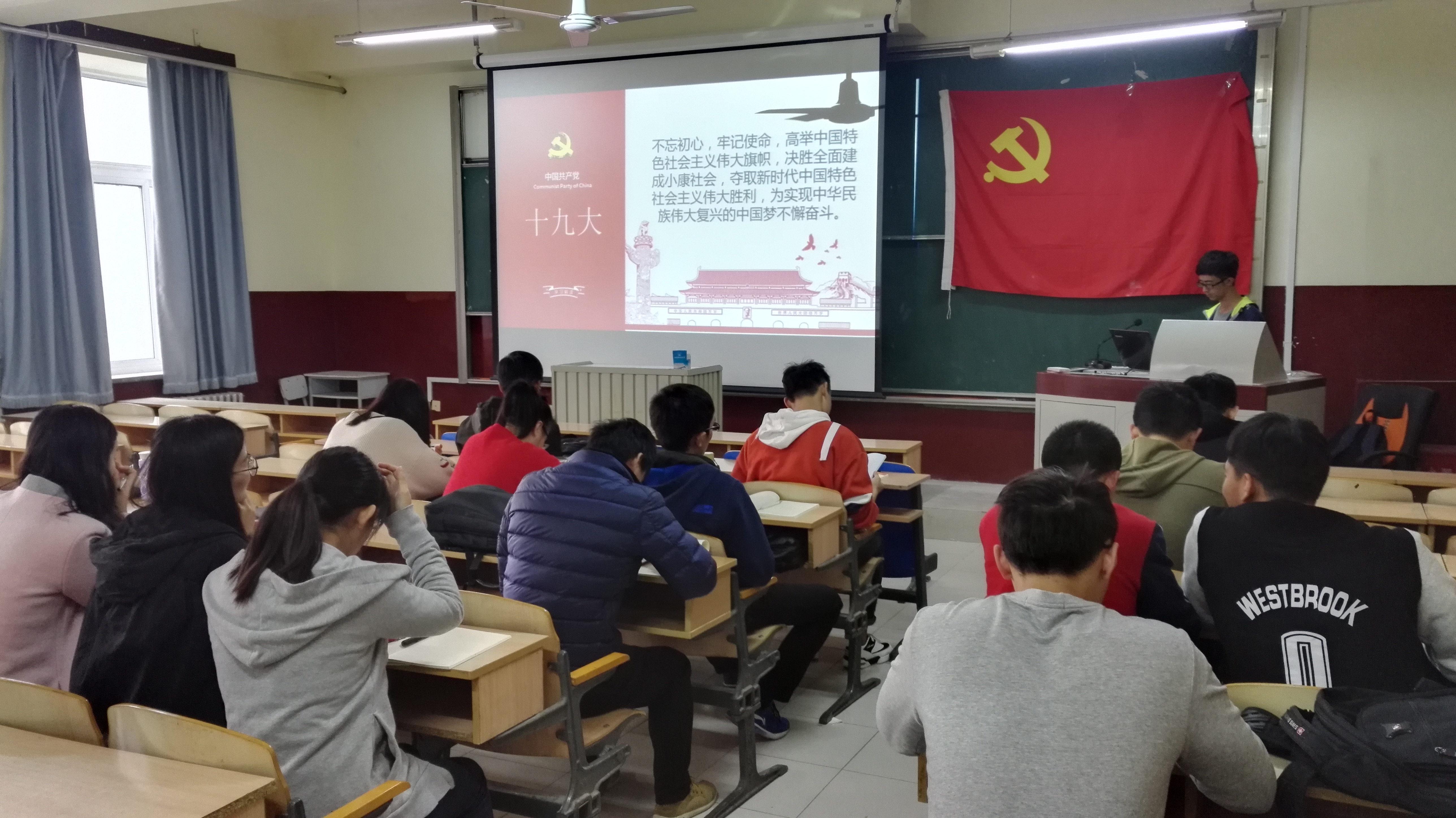 各党支部积极响应学校成人a片党委关于学习十九大精神的部署,结合支部实际情况自行选题,认真筹备,支部成员积极参与,充分发挥各自特长,开展了形式多样、内容丰富的学习教育。计通研17级第一党支部从十九大报告中的热点话题入手,激起了党员们热烈的讨论,在探讨中进一步加深对十九大报告精神内涵的理解。第二党支部重温了十九大开幕会视频节选,从习近平总书记令人振奋的报告中汲取力量。第三党支部分析了十九大报告中提到的57个“心”,从细节中领悟十九大精神。第四党支部准备了翔实的资料,从代表的选举到报告的形成再到会议的召开,给了同学们一个关于十九大更清晰的轮廓。第五党支部采用演讲的方式,将个人理解与报告的内容有机结合,引人深思。第六、七党支部采用巡讲的方式联合开展组织生活会,将会议气氛引向新的热潮。