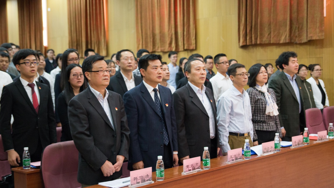 在庄严的国歌声中,主持人宣布大会开始。