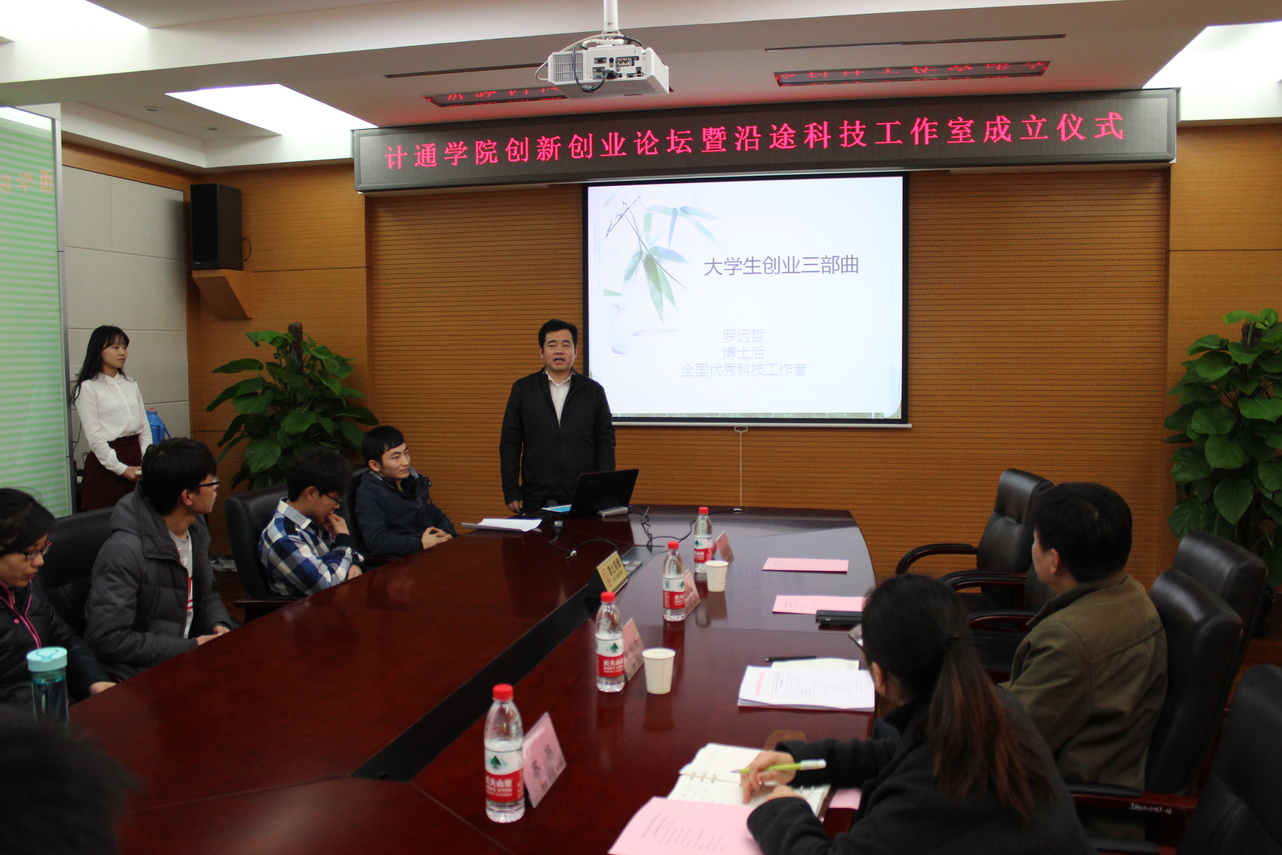 于信息楼601举行创新创业论坛暨沿途科技工作室成立仪式,浪潮北京分公司总经理罗远哲、成人a片党委书记黄武南、副院长张晓彤、党委副书记苏栋等出席活动。