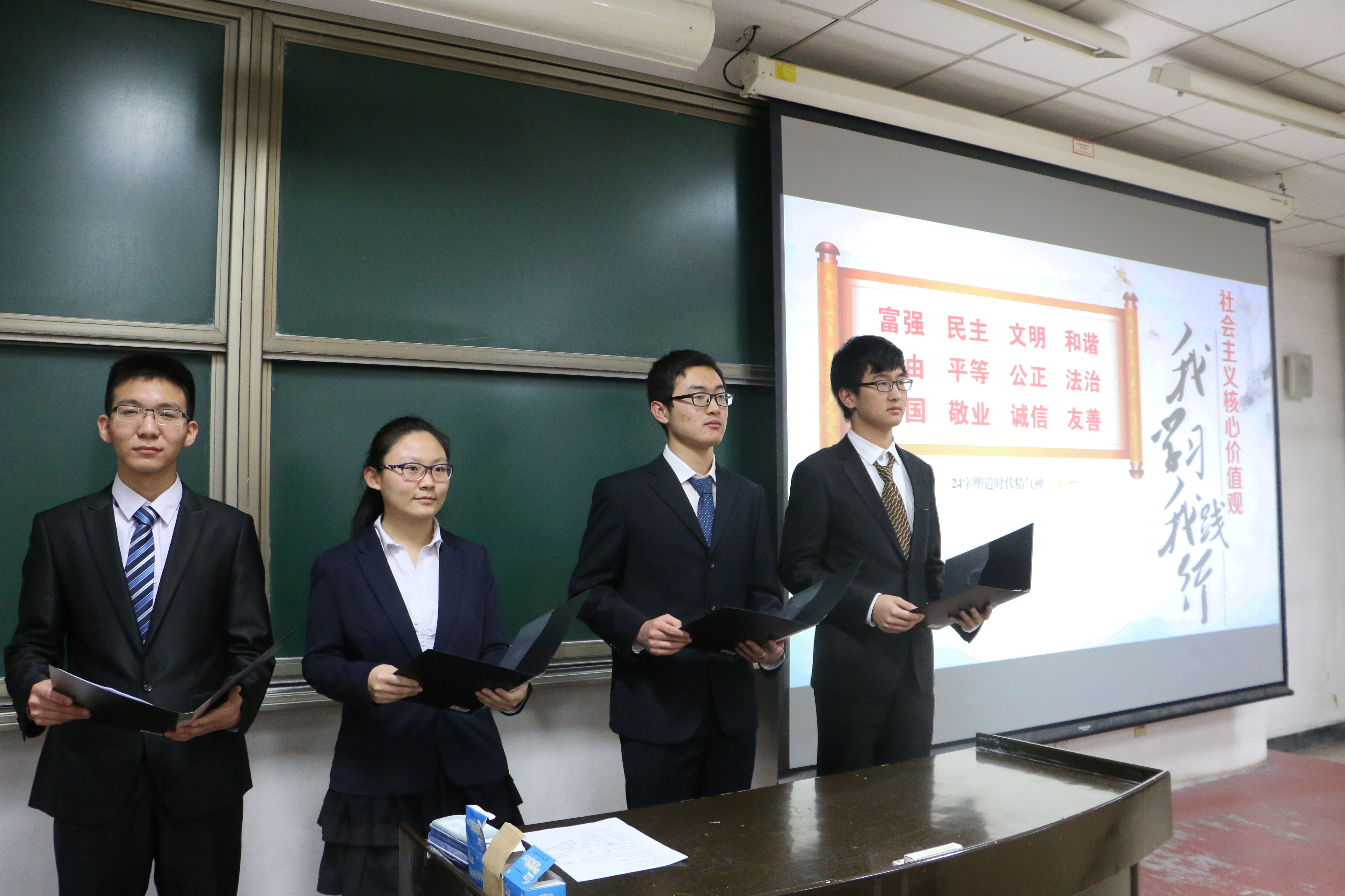 学子服务社会、甘于奉献的精神追求;党校三班和六班分别以朗诵和动态相册的形式,讲述了学员们对于社会主义核心价值观内涵的理解,同时也阐释出大家作为入党积极分子,对于如何在校园中带头培育和践行社会主义核心价值观的深入思考;党校四班的学员们以培育优良学风为切入点,用真诚朴实的话语表现了成人a片