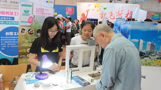 2015年5月16日,由科技部、中宣部、北京市政府等单位共同主办的“2015年全国科技活动周暨北京科技周开幕式”在北京民族文化宫举行。本届科技周主题为“创新创业·科技惠民”,由众创空间、科技创意坊、创造我发明、科普体验厅、电动汽车、纳米小屋等板块组成,汇聚了全国180余家单位的300多个创新创业和科普体验项目。我校物联网创新创业大赛的优秀项目——“iWindows” 自感应低碳智能窗和“老有所依”智能安全手杖也获邀参展,并受到了广泛好评。