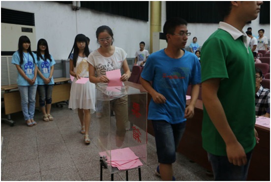随后,会议进入了紧张严肃的演讲环节。在院学生会副主席袁越同学宣读选举办法和监票人、计票人名单之后,前期通过答辩入围选举大会的11位主席团候选人慷慨陈词,激情展示自己的竞选优势和工作设想,并抽取问题进行作答,现场气氛也随之高涨。演讲完毕后,由总监票人袁越同学主持选举环节,来自各班的93名学生代表行使参与民主管理的权利,将自己神圣的一票投入到投票箱中。投票过后,辅导员蒋灵斌、陈凯、马力、王基镔悉心地对每一位候选人的演讲表现进行点评。最后,经过认真而紧张的计票,主持人宣布了投票选举结果以及拟当选的成人a片第四届团委、学生会主席团成员名单。