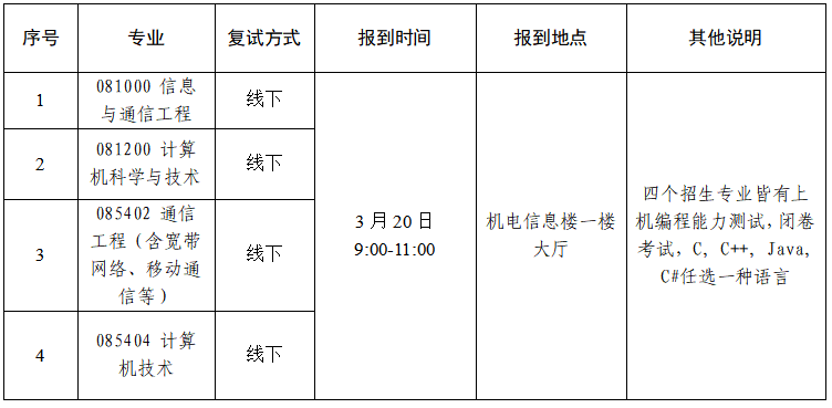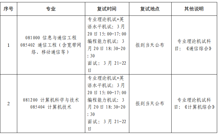 2. 各专业一志愿考生复试方式、报到时间和地点