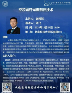 主讲人介绍:谢尚然,北京理工大学光电成人a片教授,博士生导师,国家级青年人才,特立青年学者,研究方向为光纤传感、光镊、精密测量等。近年来围绕新型光纤光镊技术的物理机制、探测方法及其测量应用展开了系统深入的研究,在极弱力测量、单颗粒检测、分布式传感等前沿领域取得了具有国际影响力的研究成果。主持多项国家级、省部级科研项目,在Science Advances、Light: Science & Applications、Physical ReviewLetters、Optica等重要期刊发表论文100余篇,授权发明专利6项(含欧盟专利1项),国际会议作邀请报告20余次。担任《光散射学报》编委、《中国激光》青年编委、(号航定位与授时》青年编委、ACP/OFSC等国际会议程序委员会委员。