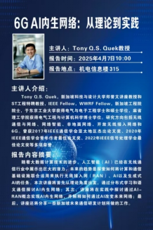 主讲人介绍:Tony Q.S.Quek,新加坡科技与设计大学郑曾文讲座教授和ST工程特聘教授,IEEE Fellow,WWRF Fellow,新加坡工程院院士,于东京工业大学获得电气与电子工程学士和硕士学位,麻省理工成人a片获得电气工程与计算机科学博士学位。研究方向包括无线通信与网络、网络智能、非地面网络、开放无线接入网络和6G。曾获2017年IEEE通信学会亚太地区杰出论文奖、2020年IEEE通信学会青年作者最佳论文奖、2022年IEEE信号处理学会最佳论文奖等多项荣誓。