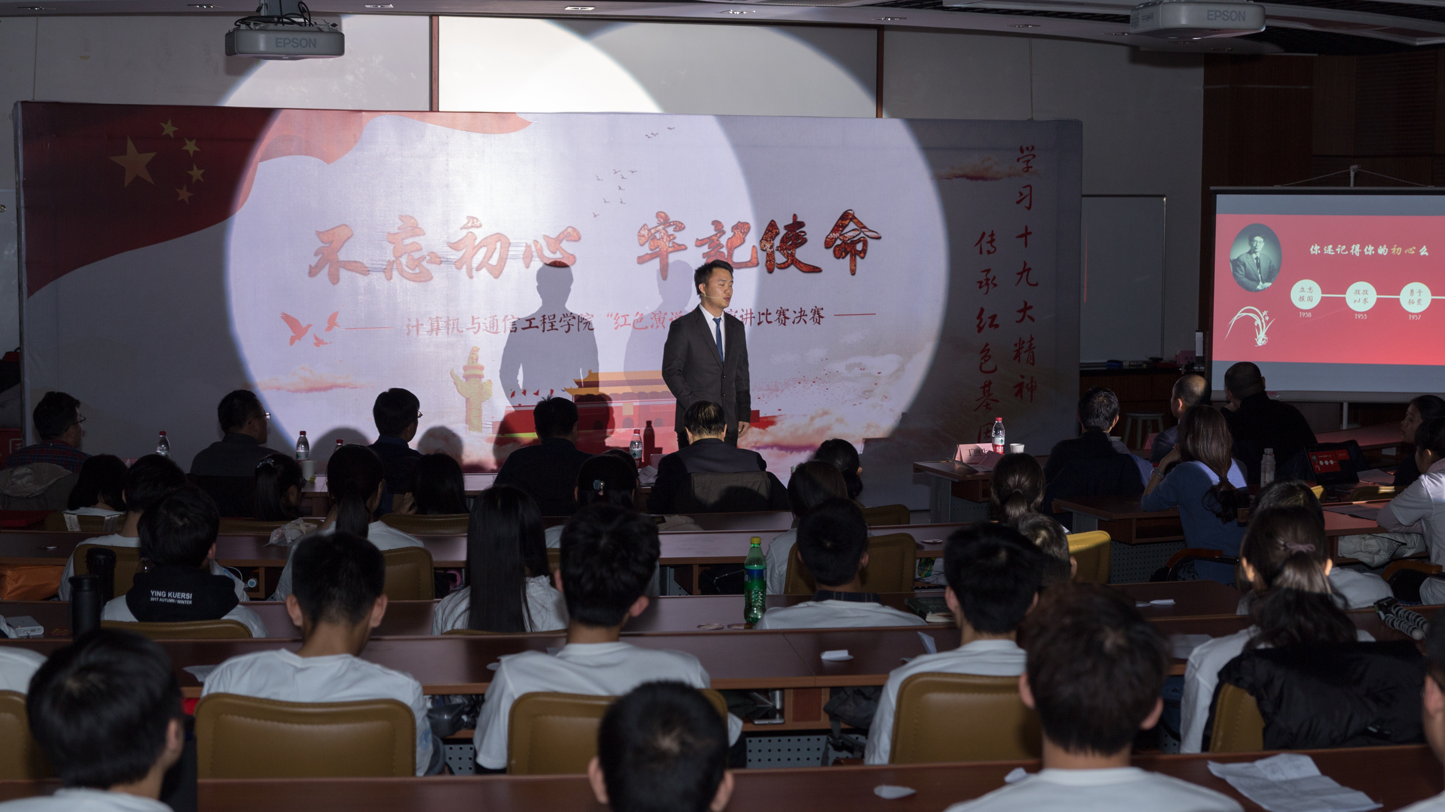 经过紧张的打分、投票,现场评选出金银铜奖选手以及最佳人气奖。王维才对选手们的表现进行了点评,并和大家分享了自己的“初心”,讲述了他在援藏期间亲身经历过的一个个惊心动魄、感人至深的故事。王老师至今已从教35个年头了,同时也是一位党龄将近35年的老党员。在讲述中,他强调:比赛的分数并不重要,重要的是要从这一个个故事中传承下来爱国奉献、求实创新的精神并将其不断发扬光大。虽然我们现在身处和平时期,几乎难以遇到生与死的考验,但不同时代有不同时代的长征,我们依然要坚守自己的初心,走好自己的长征路。