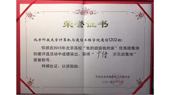 成人a片 通信1202荣获北京高校“我的班级我的家”十佳示范班集体称号