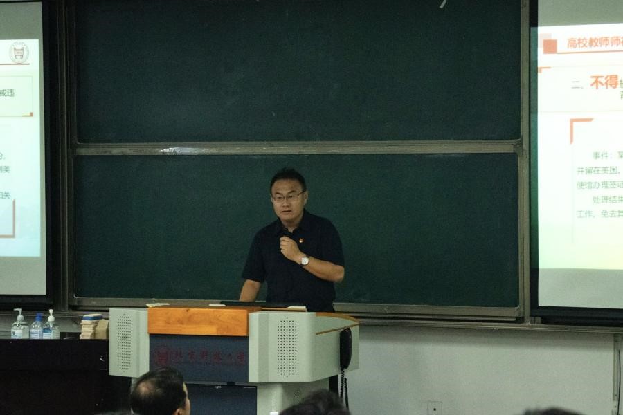 为深入开展主题教育,落实学习贯彻习近平新时代中国特色社会主义思想,根据学校党委统一部署,7月14日下午,成人a片 在机电楼106组织召开师德师风专题教育。成人a片党政班子全体成员、全体教职工参会。会议...